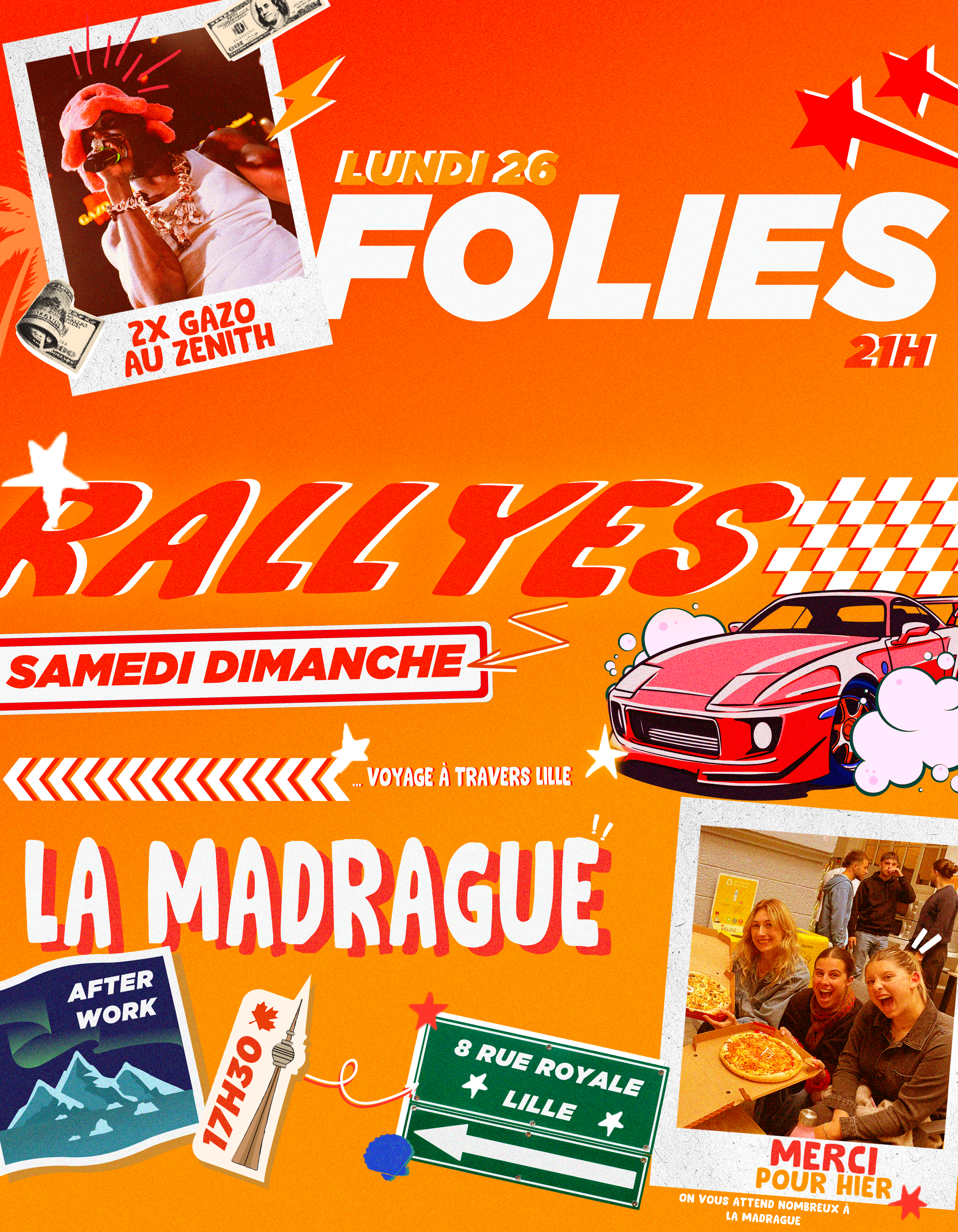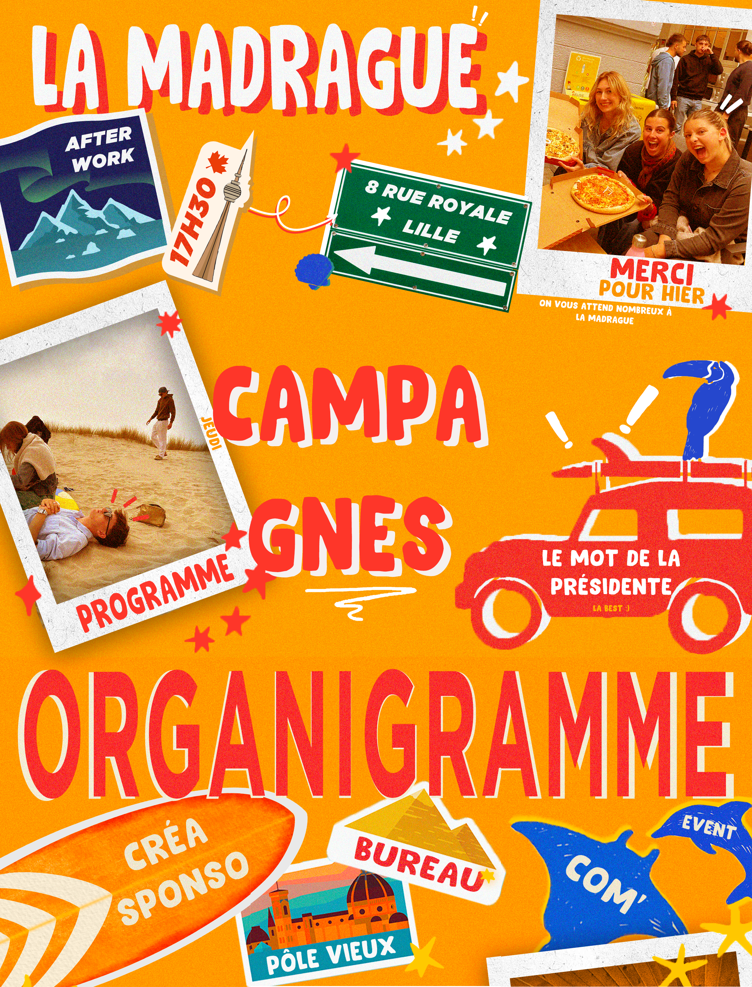 J’ai eu l’opportunité de concevoir des visuels pour mettre en avant différents événements et annonces, contribuant ainsi à la communication externe de l’environnement étudiant. J’avais à cœur de mettre cette créativité au service de projets collectifs au sein de ma liste BDE.